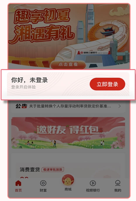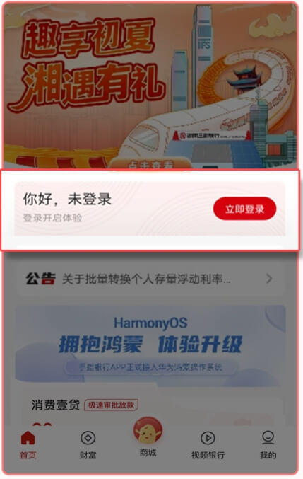 1.打开湖南三湘银行手指银行App