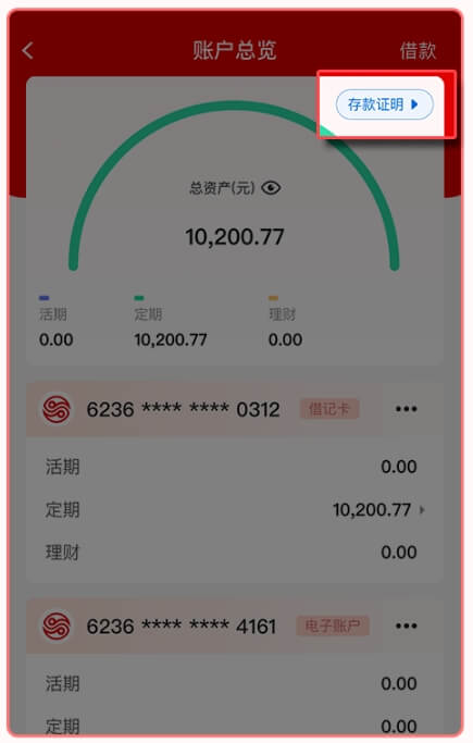 4.点击“存款证明”