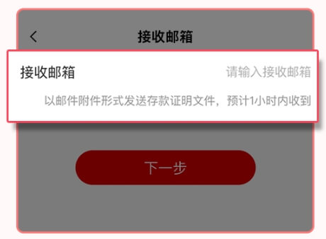 6.输入“接收邮箱”地址信息后,点击“下一步”