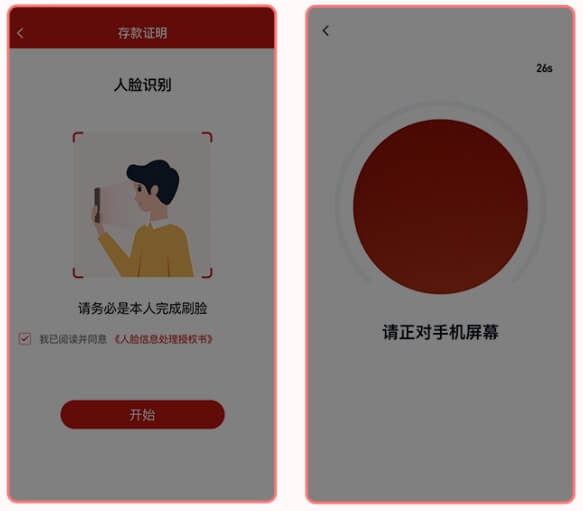 8.进入“人脸识别”页面,勾选协议后请按照指示操作