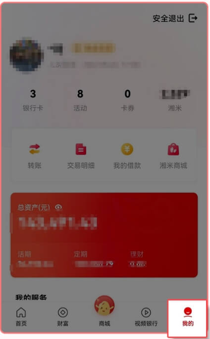3.点击底部菜单栏最右侧“我的”,进入银行卡