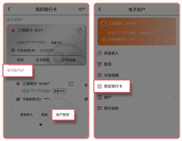 4.点击菜单栏“电子账户”-“账户管理”-“绑定银行卡”
