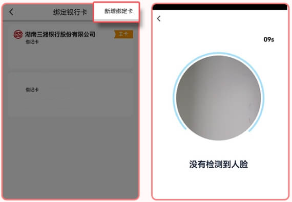 5.点击页面右上方“新增绑定卡”-完成人脸识别检测