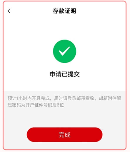 9.完成申请,邮箱附件解压密码为开户证件号码的后6位。