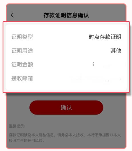 7.存款信息需由本人接收,信息确认无误后点击“确认”跳转到下一步