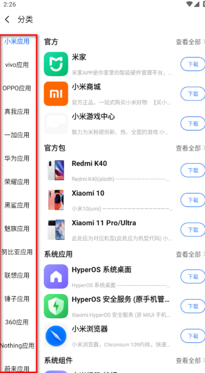 2、进入分类栏目查找应用:在首页分类区域中选择对应主题栏目,例如“小米应用”分类,即可进入该类资源集中展示页面,页面内会呈现相关应用列表,便于按类别筛选目标内容,减少逐个查找的步骤,提高定位效率。