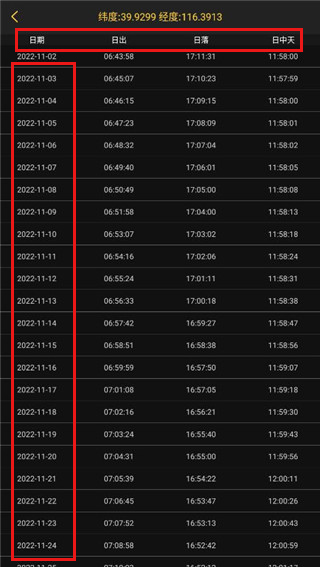1、【日月计算】支持日出日落、月出月落与暮曙光时间精确计算,方便掌握光线变化规律。