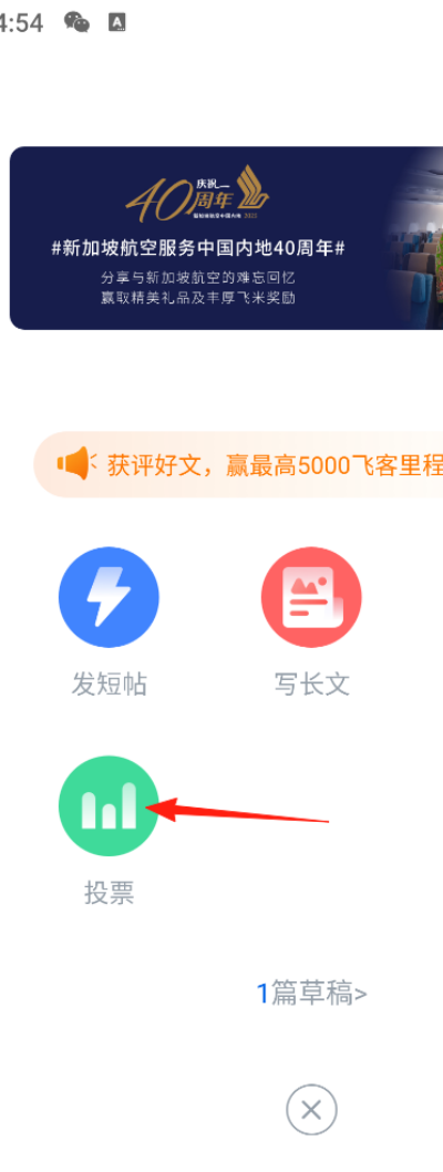2、在发布功能中选择“投票”选项,进入投票内容编辑界面。