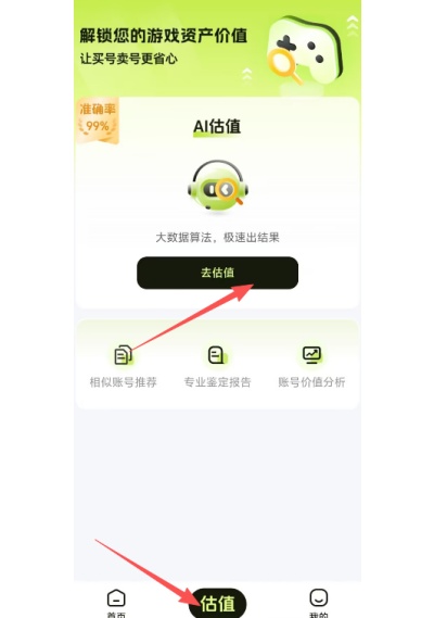 1、打开软件进入主界面,找到估值板块并点击“去估值”选项,即可快速进入账号信息提交界面。