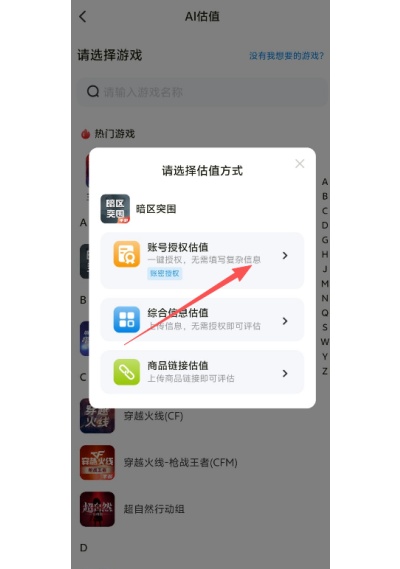 2、在信息提交界面,根据提示选择合适的估值方式、对应游戏的操作系统,填写账号基础信息后,即可启动估值流程。