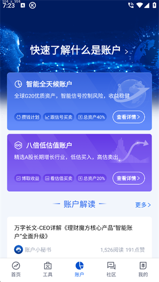 理财魔方App是一款智能基金投顾平台,通过个性化分析定制理财计划,根据您的投资金额、家庭情况、可投资资产等信息进行50亿次大数据分析,为您提供优质资产配置,获取优质回报。除此之外,理财魔方App最大的亮点就在于理财安全,整个平台由专业的团队打造安全领域,且利用人工智能实时监控你的财产,再加上证监会安全监督,能让用户放心存大钱。
