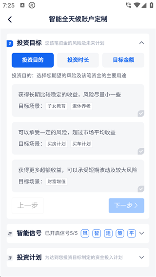 5、依次填入投资目的、投资时长、目标金额