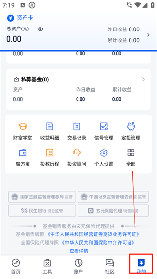 1、打开软件,点击【我的】在点击【全部】
