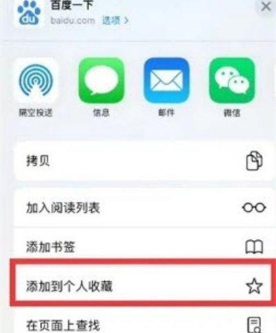 2、在弹出的工具选项中,点击【添加到个人收藏】进入设置页面。
