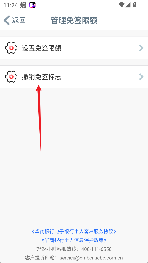 4、在页面中找到“撤销免签标志”选项并点击;