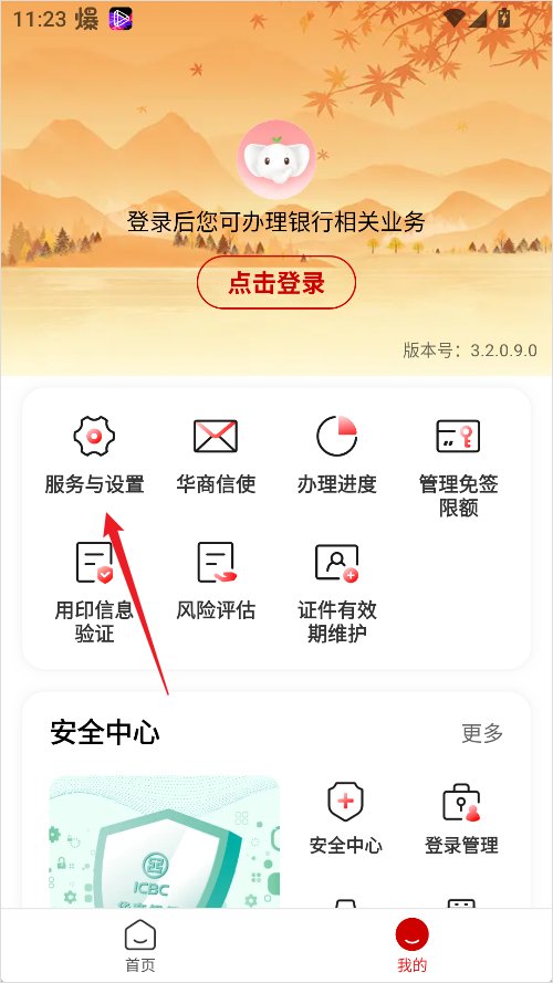 2、进入个人中心后,选择“服务与设置”;
