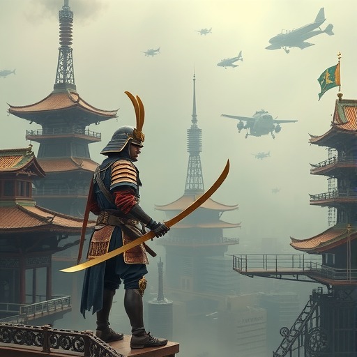 你将看到古老的木造寺庙旁边矗立着巨大的蒸汽机甲,武士们手里拿的不仅是刀,可能还有魔法符咒。