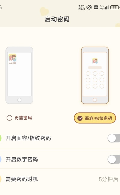 4、在安全设置中勾选“面容/指纹密码”选项,并可选择所需密码类型(如数字密码)进行配置。