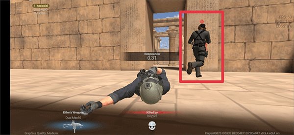 6、战斗大师游戏中带有红色标记的任务是敌方,当他出现在面前时,将枪的准心对准敌人并按下扳机将器击杀即可。