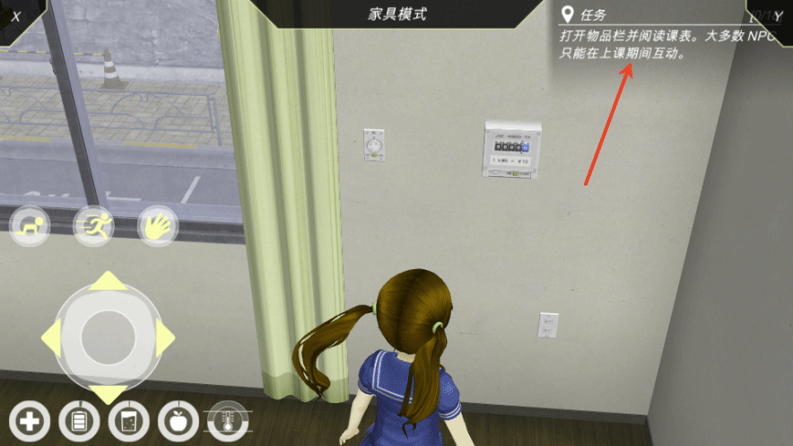 5、右上角显示任务提示,玩家可按提示自由探索校园及城市;