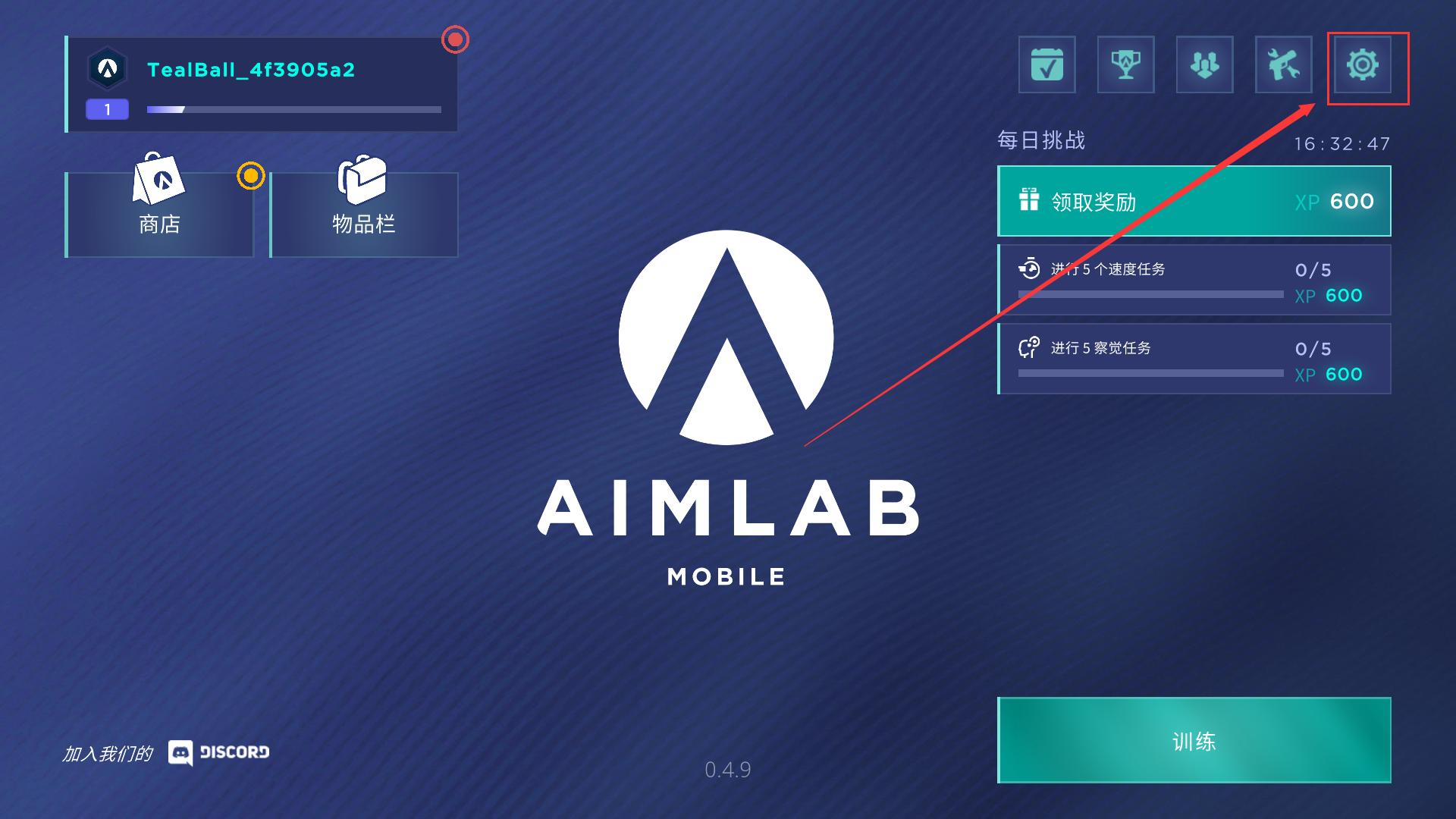 3、过完新手教程后点击右上角设置按钮进入设置