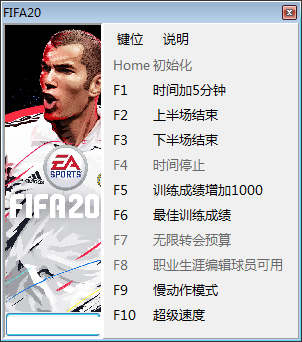 FIFA 20修改器是由MrAntiFun专门针对游戏FIFA 20终极版研发制作的一款全多功能修改器,这个修改器功能非常的强大,可适用于FIFA20终极版本的修改器,包含各种主队和客队相关数值修改的内容,比如可以让时间加5分钟、上半场结束、下半场结束、时间停止、无限转会预算等十项修改功能,帮助玩家轻松掌控赛场,轻松获得最佳的游戏极致体验。FIFA 20作为一款由美国EA制作发行的足球体育类游戏,是人气系列《FIFA》系列最新的正统续作,本作采用了最新的游戏引擎开发,拥有顶尖的游戏画质,并且在本作中也新增了大量的新球员,游戏的动作也更为流畅,玩家可以随意组建足球队开启一场梦幻般的足球比赛盛宴。游戏采用Frostbite技术制作,以生动的方式呈现足球赛事的两种面貌:专业舞台令人神往的魅力,以及EA SPORTS VOLTA当中全新的逼真街头足球体验。
