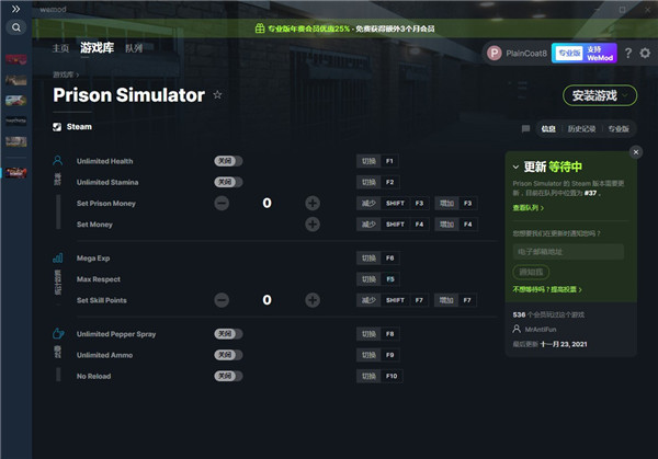 steam监狱模拟器修改器是可以给你《监狱模拟器》游戏进行修改游戏内容的修改工具。有非常多的用户都喜欢玩这款游戏,它在steam上也是销售火爆,玩法多多。而游戏也有一定的难度和挑战性。所以本次小编给大家提供的这款修改工具可以直接帮助玩家修改部分游戏数据,让各位玩家可以更好的玩游戏。不管是无限生命还是无限体力都可以通过快捷键一键开启,而且还能够开启海量经验和海量技能点,让你快速学会自己想要的技能,提升自己的游戏体验。并且这款steam监狱模拟器修改器除了可以帮助大家修改这款游戏之外,还能够通过搜索功能搜索其他游戏进行修改数据。大家可以来本站下载这款好用的监狱模拟器十项修改器试试吧,让你轻松拥有游戏体验,更多游戏也能够通过它来修改,快来32r软件站下载使用吧。