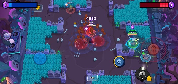 布洛克比较考验技巧,不仅要精准打击对手走出家门的两条线,还要协助塔拉控制对方③草的敌人。在阿勃丧失战斗力或死亡时,及时补位或捡取宝石,属于需要灵活多变的英雄。大招需要破坏上方标红的区域。本图的墙体也很适合布洛克使用妙具进行战略转移。