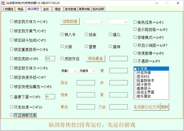 2、打开仙剑奇侠传2修改器,并再次进入游戏