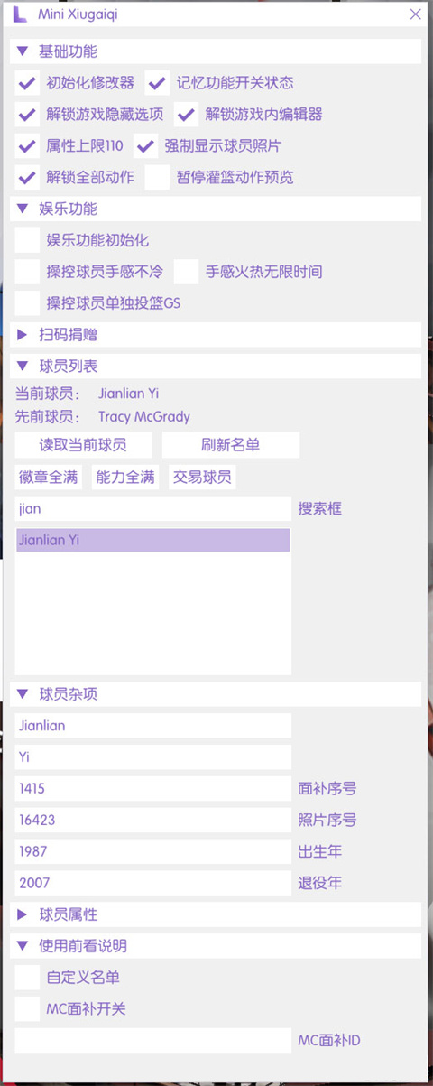 修改器初始化后,进行一次读取名单的动作(“载入MC”、“进入编辑阵容”一类),点击修改器的“刷新列表读取”。