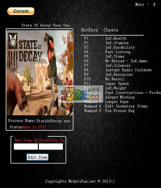 腐烂国度修改器,其中能够修改众多玩家的属性从生命到耐久,再到各种物品数量,你还可以对属性进行修改或者负重等等,总之就是为了大大减少玩家在腐烂国度中遇到的难度。如果你被腐烂国度这款游戏虐了,不要灰心,下载腐烂国度修改器,让你轻松教训欺负你的小怪和大BOSS们。