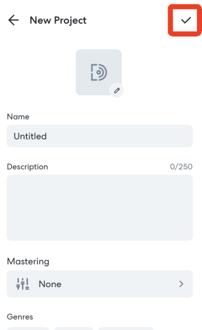 3、在设置页面中完善音乐头像、名称、介绍与风格信息,确认无误后点击右上角“√”完成导出保存操作。
