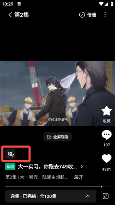 3、返回播放界面后点击“弹”按钮进入弹幕发送入口。