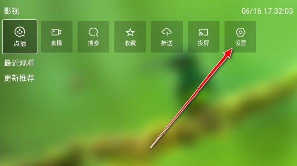 1、首先打开Fongmi电视版应用,在主界面找到并点击“设置”入口,进入系统配置页面,为后续点播源设置做好准备。